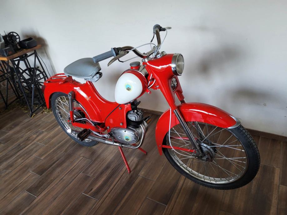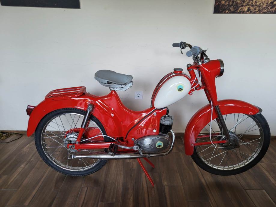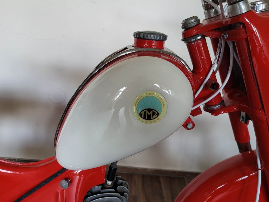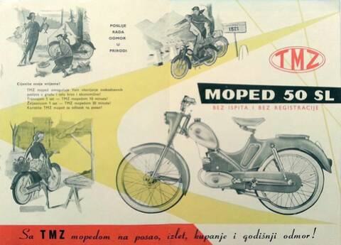 Jedinstvena prilika. Prodajem iz obiteljske kolekcije raritetni oldtimer motor TMZ (Tvornica motora Zagreb) SL 50 iz 1959e godine. Jednocilindrični dvotaktni motor, 49.9 cm3, 2.2 KS, 2 brzine, 51 kg, do 50 km/h, rezervoar 5.5 L, teleskop vilice.