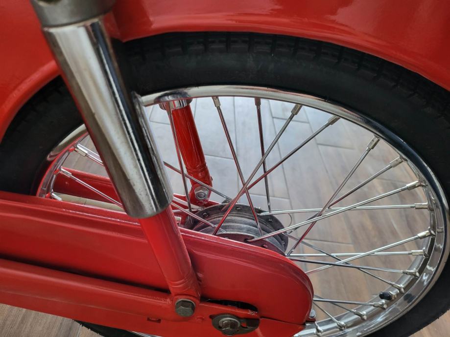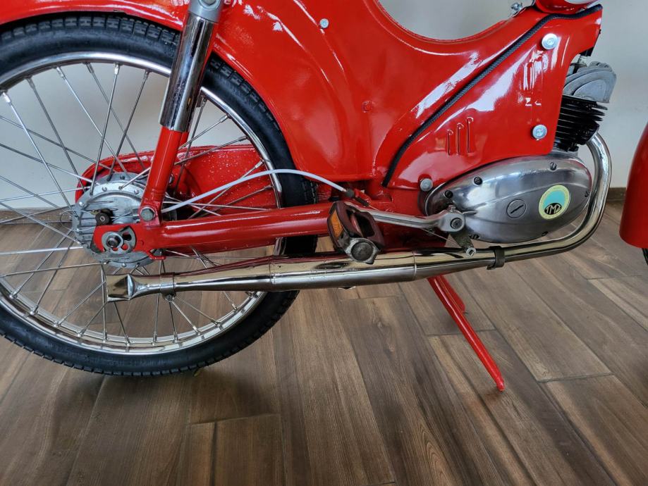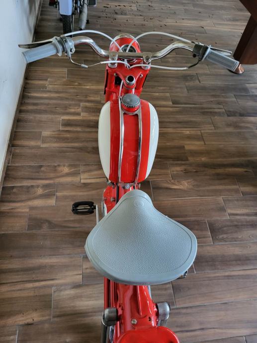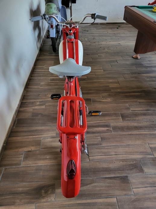 Karoserija komplet ispjeskarena i novi lak. Aluminijski dijelovi (dobos, poklopci) komplet isploirani, a metalni dijelovi (vilice, žbice, kotač, auspuh, guvernal) komplet kvalitetno ispolirani. Motor je u potpunosti originalan i obnovljen, preostaju samo sitni mehaničarski radovi za vozno stanje. 1.vlasnik