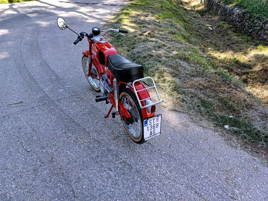 Motor je kompletno restauriran prije cca 2 godine, napravljana je kompletna generalka mašine, nove su gume, kočnice, sajle, uglavnom sve. Nakon te kompletne obnove prešao je oko 1.100 kilometara. Registriran je godinu dana, 5 brzina, mala potrošnja, plijeni poglede gdje god da se vozi. Prodaje se jer se jako rijetko vozi (u godinu dana prešao sam s njim oko 200 kilometara). Cijena nije fiksna, nakon pregleda motocikla se možemo dogovoriti oko iste.