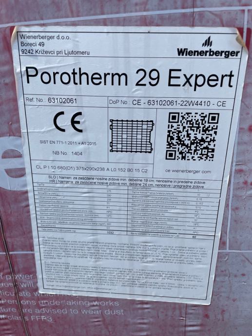 Prodajem 5 paleta, odnosno 300 kom Porotherm 29 Expert opeke. Težina palete 1032kg.