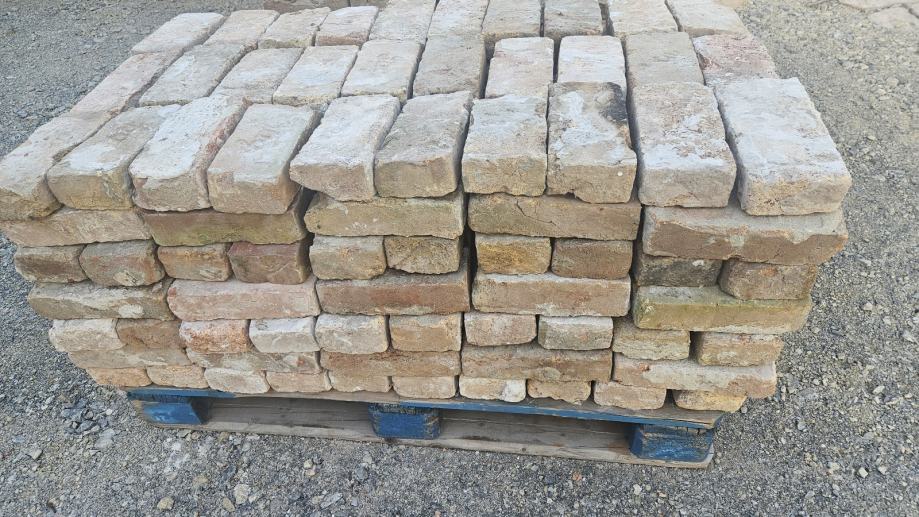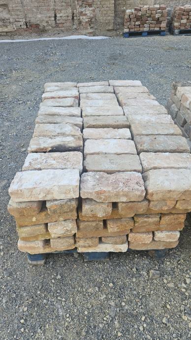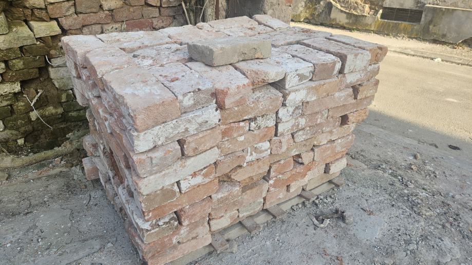 Prodajem staru njemačku ciglu, očišćenu i složenu na paletama. Radi se o punoj opeci s utisnutim njemačkim oznakama proizvođača, karakteristične tople boje koja varira od bjeličaste do narančasto-crvene. Cigla je robusna i čvrsta. Dostupno 1000 komada. Moguć prijevoz. Lokacija Vukovar.