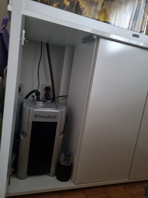 Akvari sa svom opremom pumpa,grijaci sa postoljem koja ima ispod pohranu za stvari u tri odjeljka sve u kompletu prodajem.