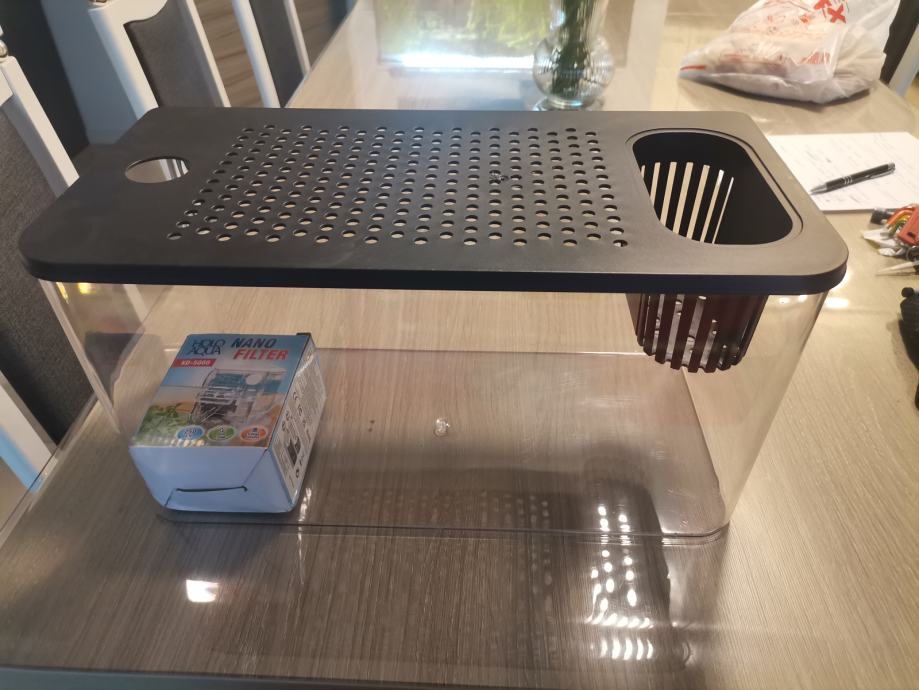 Na prodaju novi akvarij 15 litara sa poklopcem i pumpom.