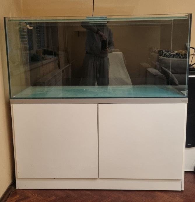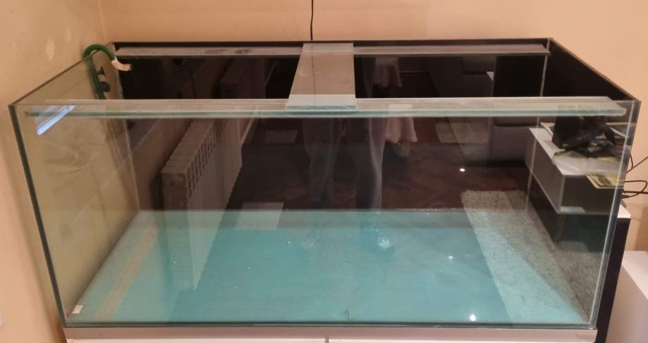 Akvarij je prazan zadnje 2 godine, 10 mm staklo strojno brušeno, poprečno i uzdužno pojačanje, proziran silikon
