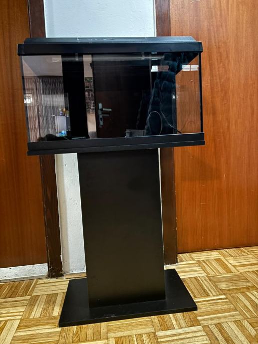 Akvarij je uredno održavan i lijepo se uklapa u prostor, idealan za stan, ured ili početnike u akvaristici.