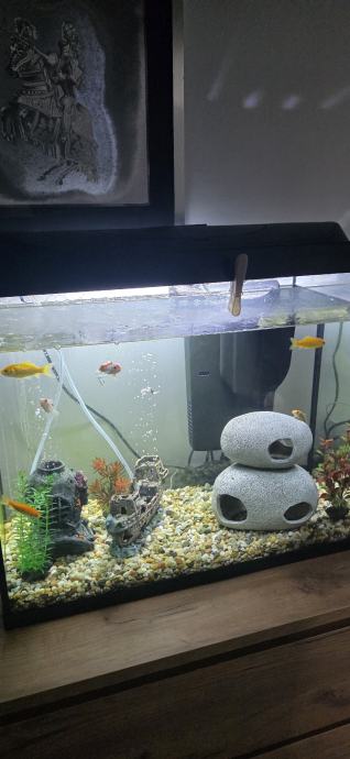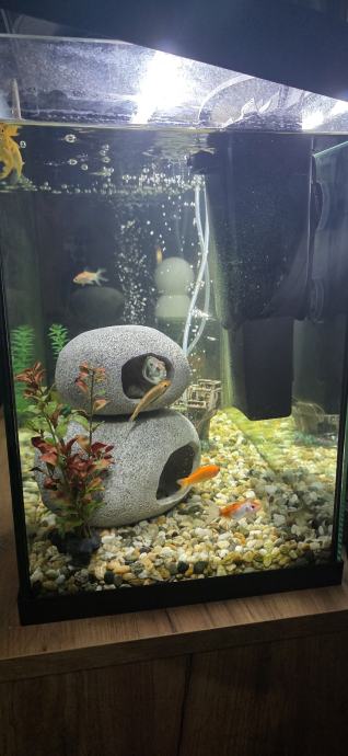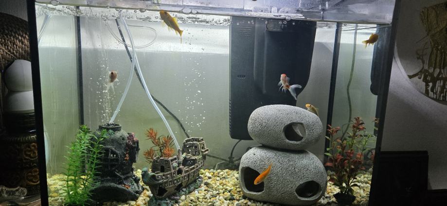 Akvarij, filter, rasvjeta i pumpa zraka s dekoracijama bez sljunka i ribica
