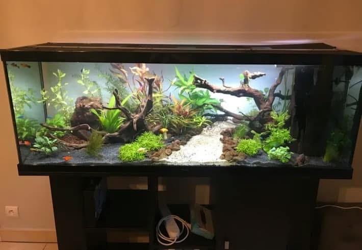 Akvarij ima original ormaric, filter pumpu, led rasvjetu, grijac, sva original prateca oprema.