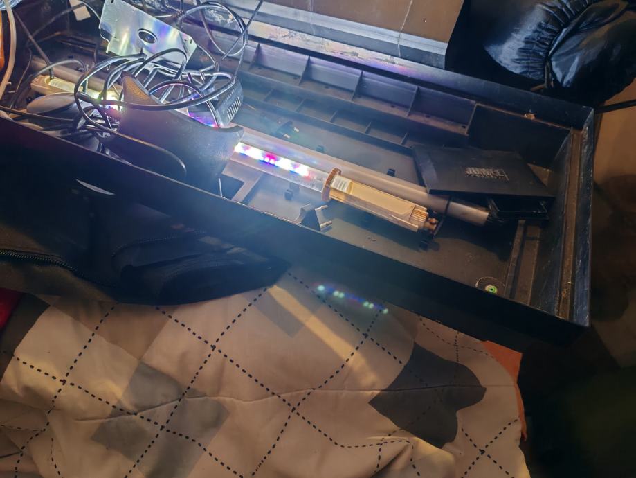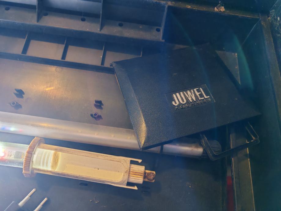 Akvarij Jewel 120 L sa filterom i pumpom. Bez postolja. Koristim manji pa ovaj prodajem jer ga nemam gdje staviti. Zato su slike ovako u djelovima jer je rastavljen ali da vidite da je sve tu i rasvjeta radi.