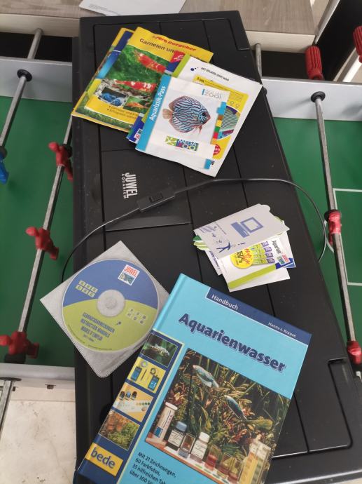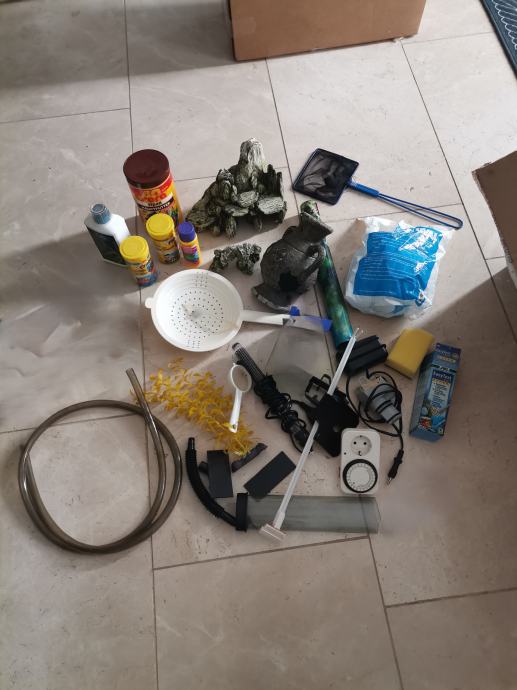 Posjedujem i nekoliko umjetnog bilja, grijače za razne litraže akvarija, razne pumpe, raspršivače zraka, automatske hranilice, dekoracije, sve se može skompletirati po želji kupca uz dogovor oko cijene!