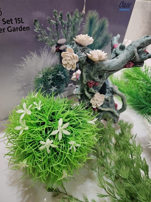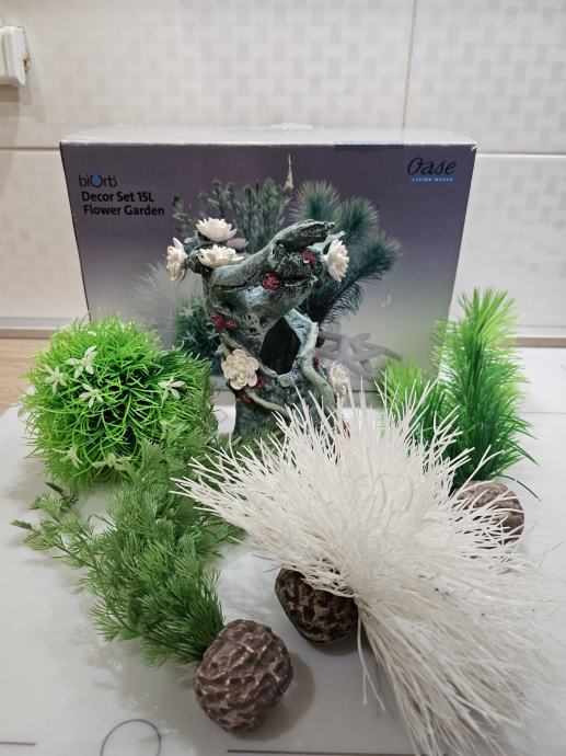 *poklon uz akvarij umjetne biljke i ukrasni kamen*