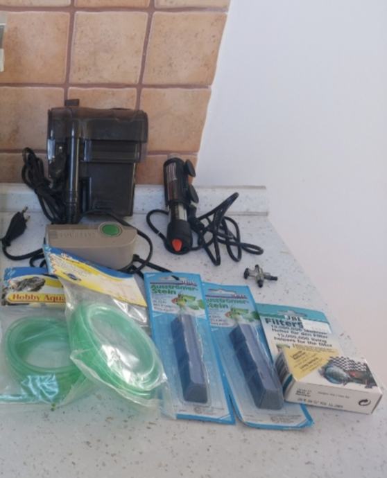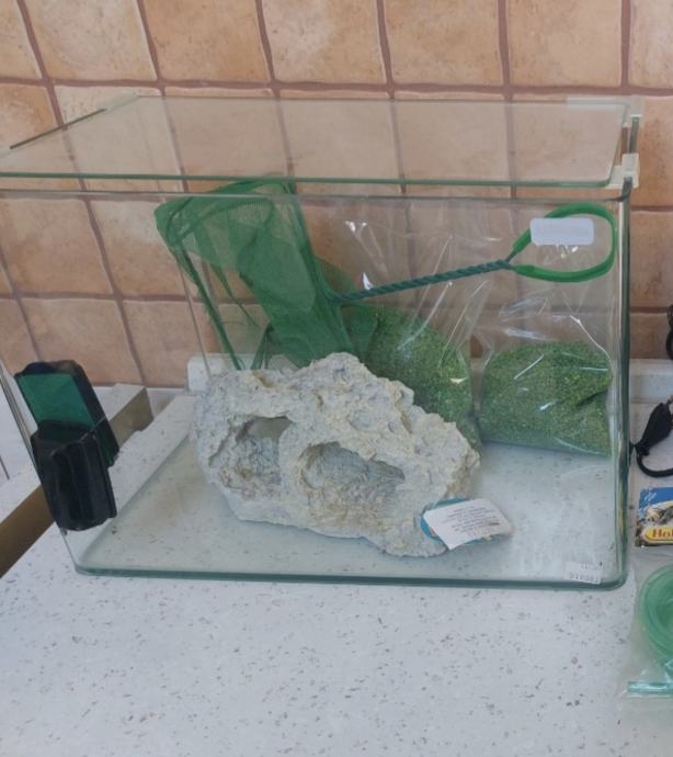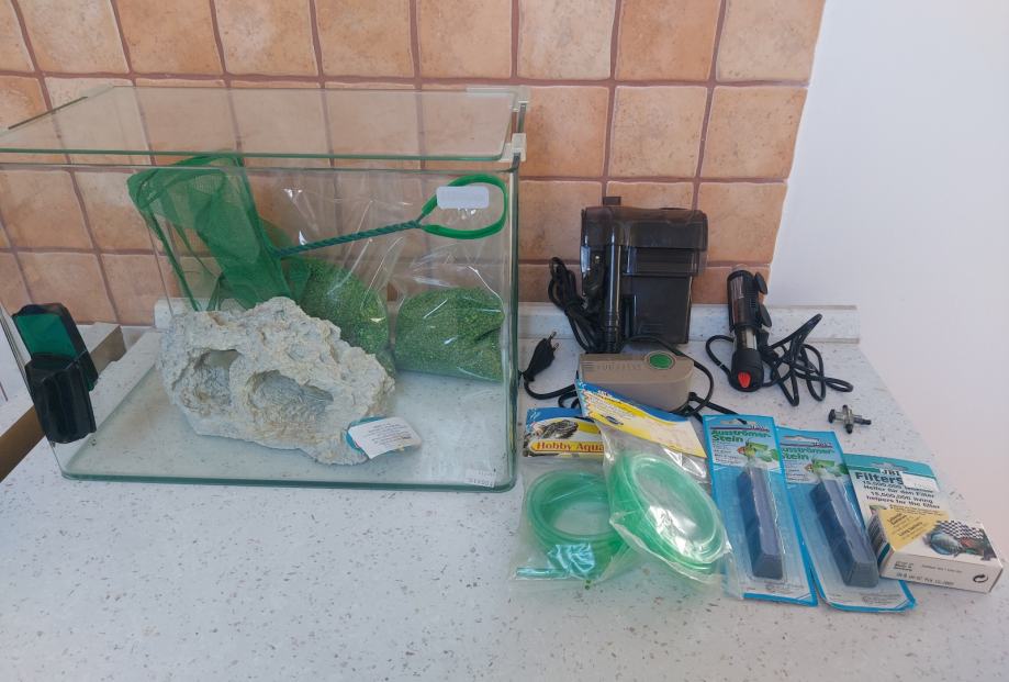 25×40×28 cm+ oprema(filter, termometar, ukrasi, 2 zračna kamena, cijevčice×2, čistač stakla, mreža, pijesak za akvarij)