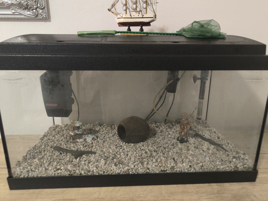 pumpa, grijač, termometar, lampa, kamenčići , dekoracija + hrana u listićima