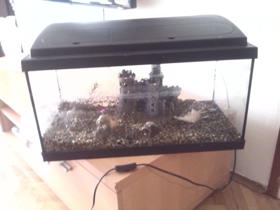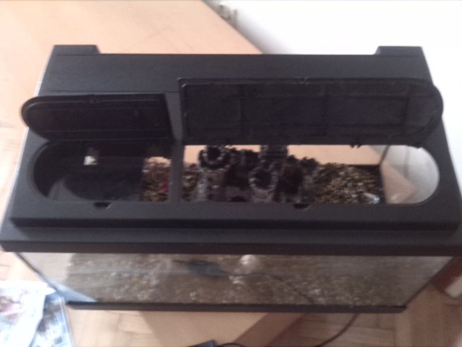 Prodajem akvarij za ribice dim. 61x31x35 s poklopcem i svjetlom ima filter pročistač pjesak figure sve OK.