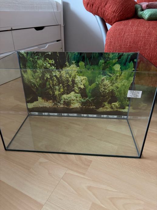 Vrlo dobro očuvan akvarij za ribice sa pozadinskom slikom
