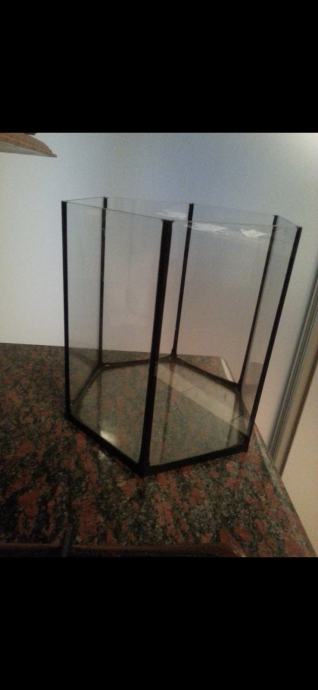 Prodajem stakleni akvarij u obliku šesterokuta, promjera 22 cm, visine 25 cm..