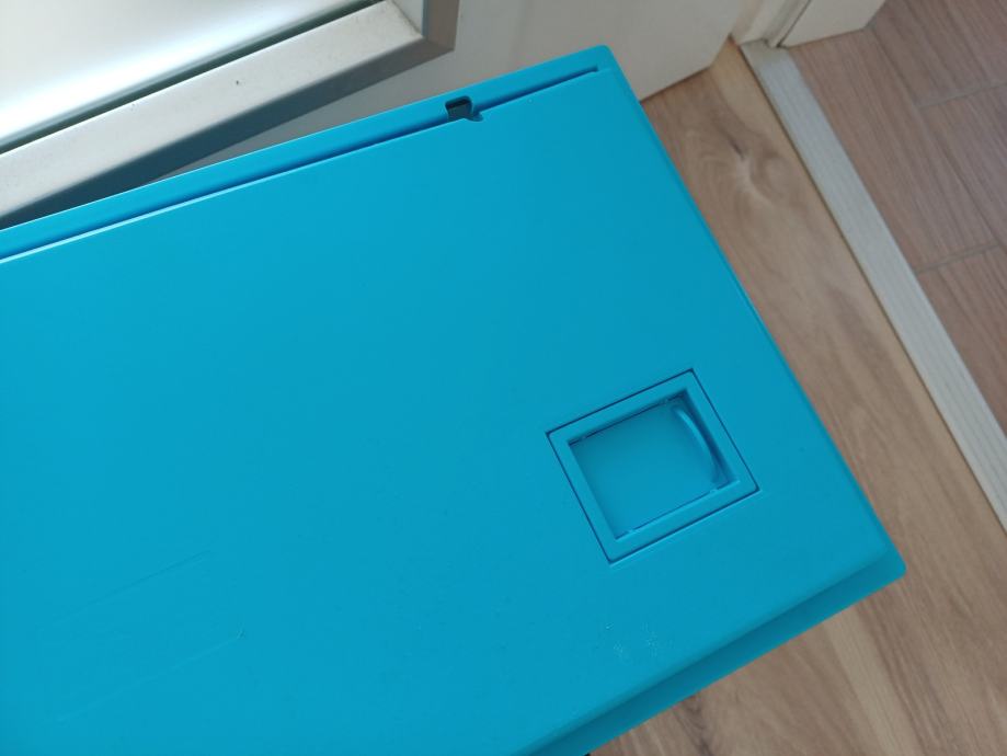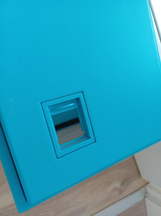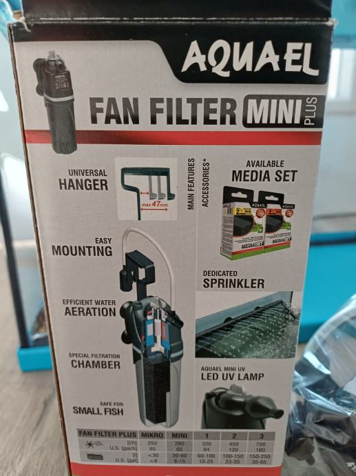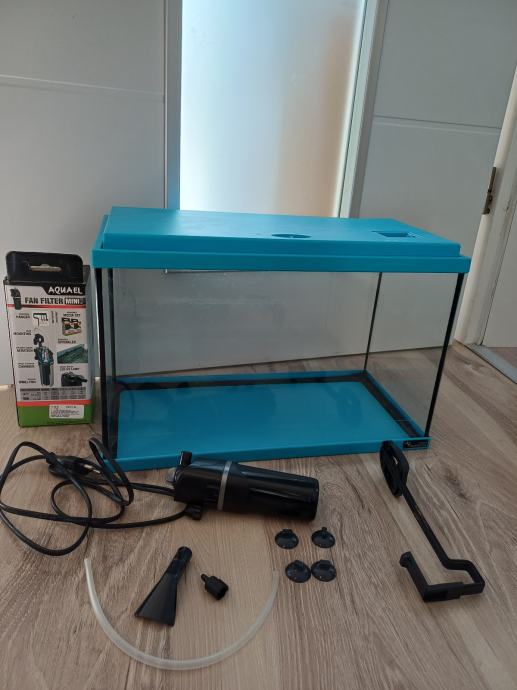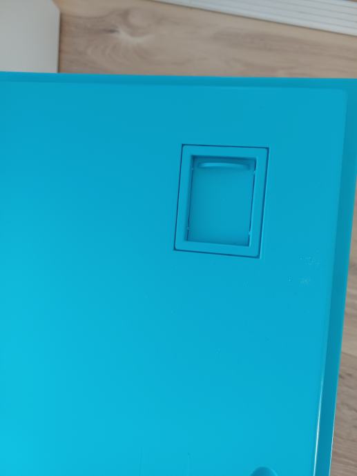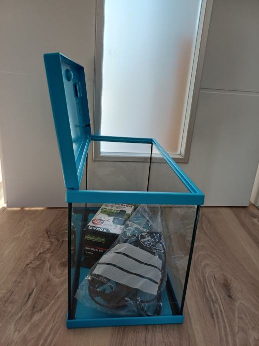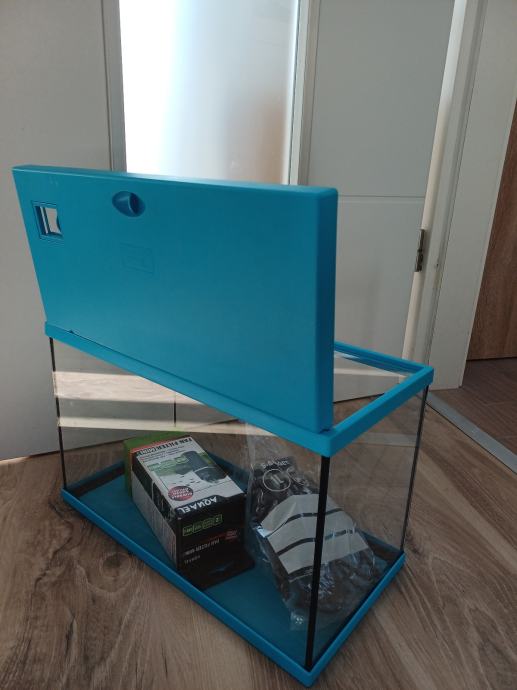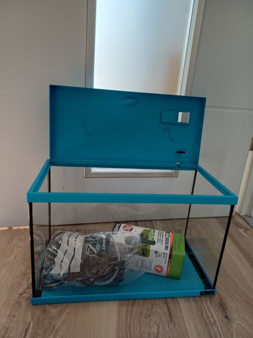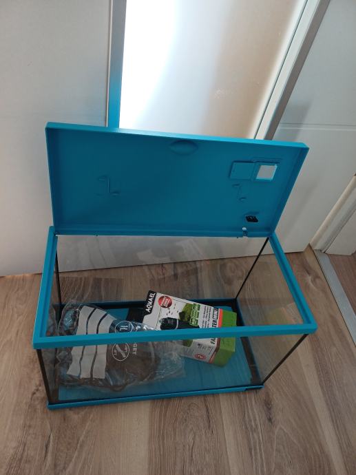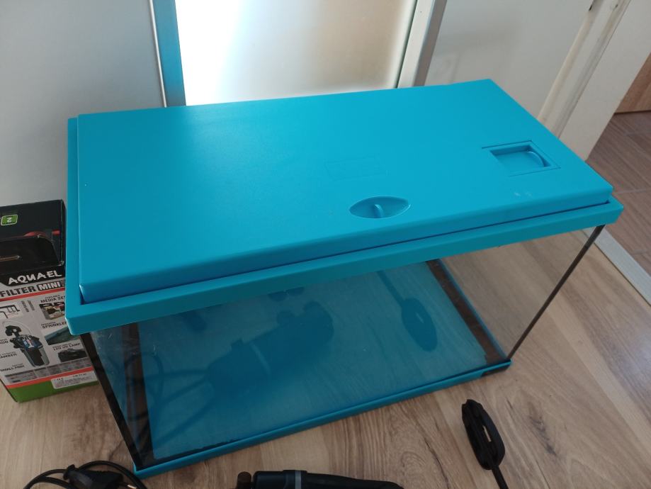 Poklopac se može skinuti, može stajati podignut a ima i pomični otvor za ubacivanje hrane za ribice.