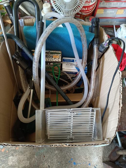Razna dodatna oprema, grijač, crijeva, zračna pumpa, filteri, spužve, čistilice, magneti...i druga oprema.