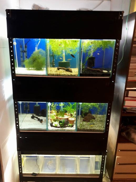 Svaki akvarij ima zalijepljenu plavu pozadinu te crnu traku (5 cm)oko cijelog ruba (sve novo rađeno!)