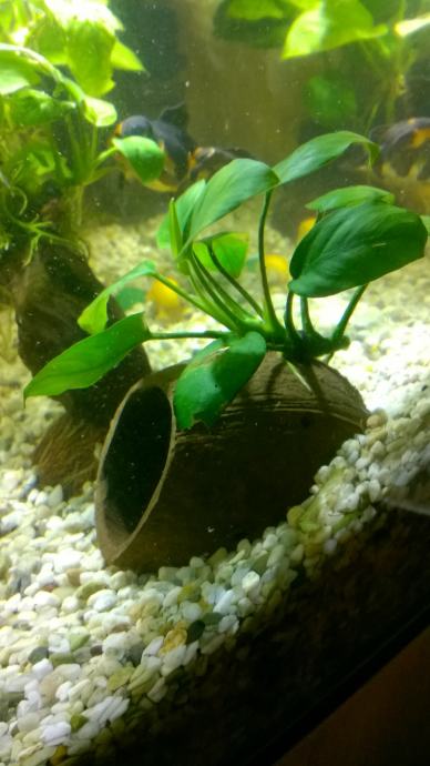 Istaknuta cijena odnosi se na komplet: Anubias (rizom s nekoliko listova) i obrađen kokosov orah na kojem je Anubias učvršćen.