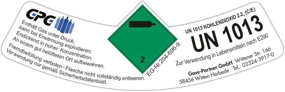 Nova CO2 boca, 2,7 Litara, napunjena sa 2000 g ugljičnog dioksida prehrambene klase sukladno standardu E290.