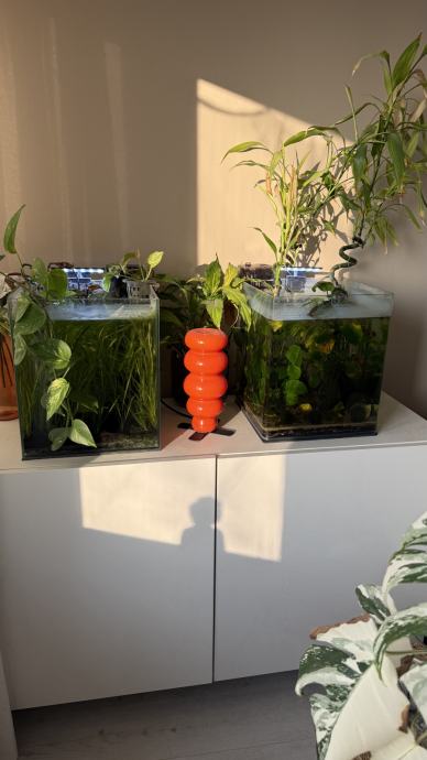 Prodajem dva akvarija u pogonu, punih kozica. jedan sa crvenim drugi sa plavim (+puzevi akvariji se doslovno odrzava sam, samo se refilla voda ili mijenja tu i tamo) rastu i razmnozavaju se ko sasave. jedan od njih nakon refilanja vode zna procurit, pobrisem i dalje nista. pa uz ta dva poklanjam jos dva akvarija kocke 30x30. idealno za nekog ko zeli pocet farmu kozica. moguca kupnja dodate standardne opreme (grijaci itd.)