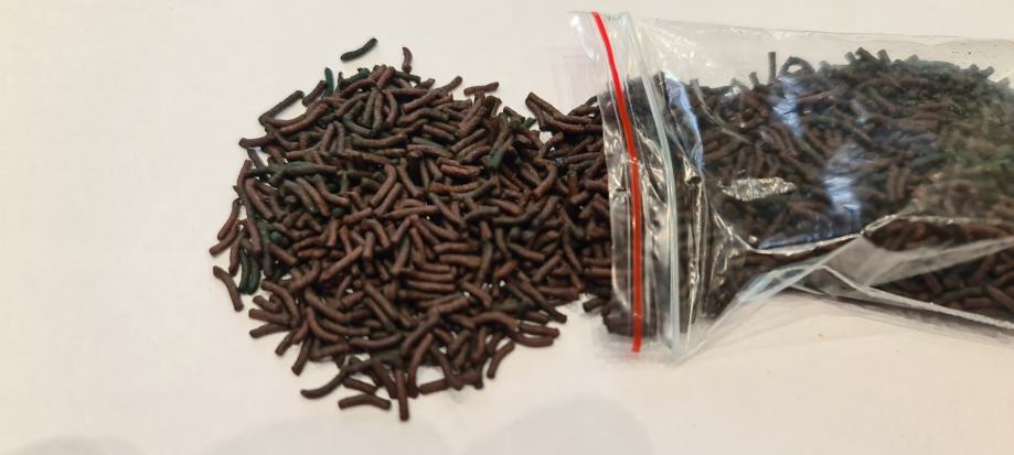 Tonući štapići osnovne hrane s lišćem morskog badema za slatkovodne i morske kozice. Dodatak spiruline, lišća morskog badema i beta glukana jača imunološki sustav kozica povećavajući njihovu otpornost na bolesti. Prirodni karotenoidi, uključujući beta-karoten iz spiruline, potiču razvoj boje i olakšavaju mitarenje.