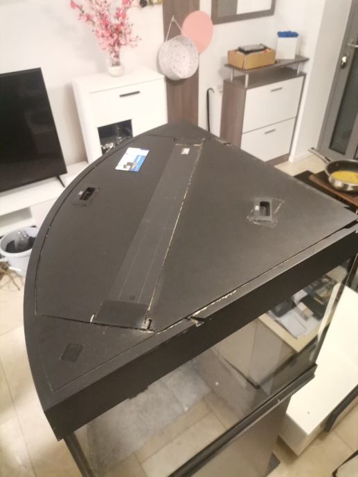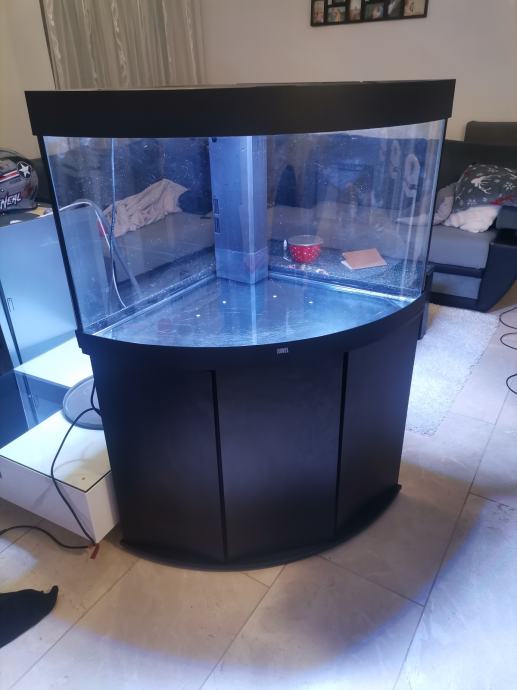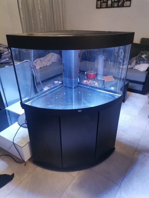 Kombinacija akvarija, s kutnim akvarijem, LED rasvjetom, sustavom za filtriranje, grijačem i odgovarajućim ormarićem, kapacitet 190 l