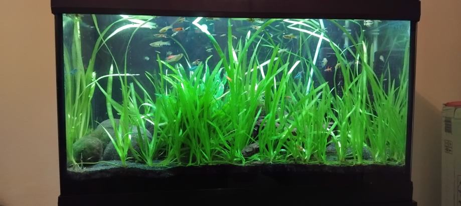 Prodajem akvarij 60 l, stalak za akvarij nosivosti 350 kg, filter fluvar U2, nekorišten grijač, unutra drvo,kamenje,kokos,biljke,merimo loptice, ancitrus, 1 amanda, 4 tetre, 3 puža i 20-30 guppy ribica.