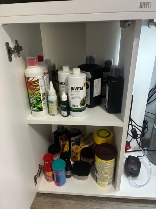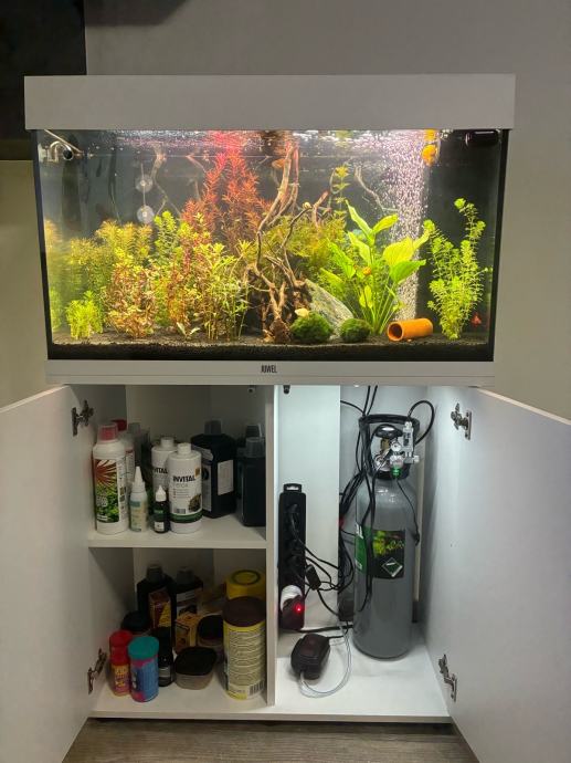 Cijena akvarija sa ormarićem, led rasvjetom, original filter i pumpa, soil podlogom, grijačem.