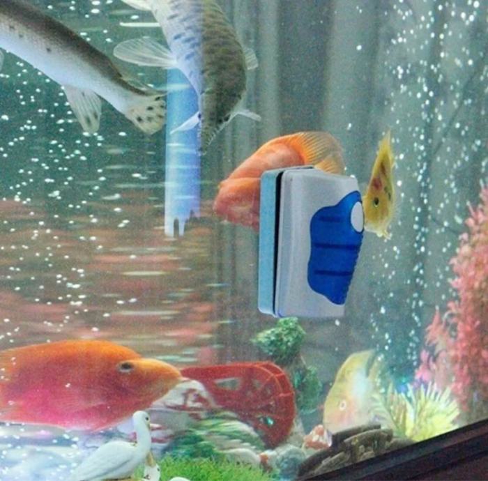 Cetka za ciscenje vanjske i unutarnje strane akvarija, jedna i druga strana imaju magnete i dok cistite vanjsku stranu akvarija drugi dio cetke cisti unutarnji dio akvarija, bez da morate mocit ruke.