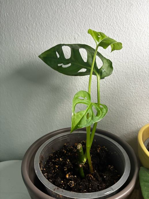 Zdrava Monstera adansonii (moguće u zemlju, vodi ili akvarij). Prva slika pokazuje trenutno stanje biljke.