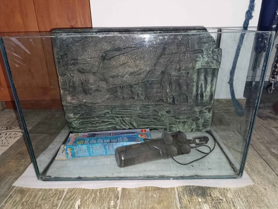 Prodajem akvarij sa grijačem,filterom i pozadinom, uz kupljeni akvarij poklanjam nezahtjevne biljke .Dimenzije akvarija su 61cm x 31cm x 41cm