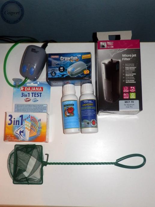 i još mrežica za ribe, filter medij tekučina za start akvarija, bakterijska tekučina za vodu,