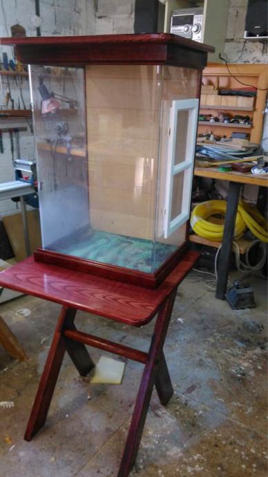 Terarij sa postoljem- puno drvo jasen ,ručna izrada!! Uređen (očišćen i dezinficiran).