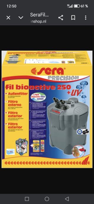 Prodajem vanjski filter za akvarij Sera Fil Bioactive 250 + UV. Radi se o kvalitetnom vanjskom filtru koji dolazi s ugrađenim UV sustavom. Model je prikladan za akvarije do 250 litara.
