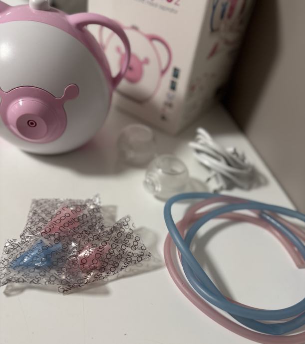 Prodajem aspirator Nosiboo pro2, korišten kratko od strane bebi blizanaca zato imamo sve nastavke duplo, novi zapakirani nastavci (2 roza i 1 plavi), filter novi