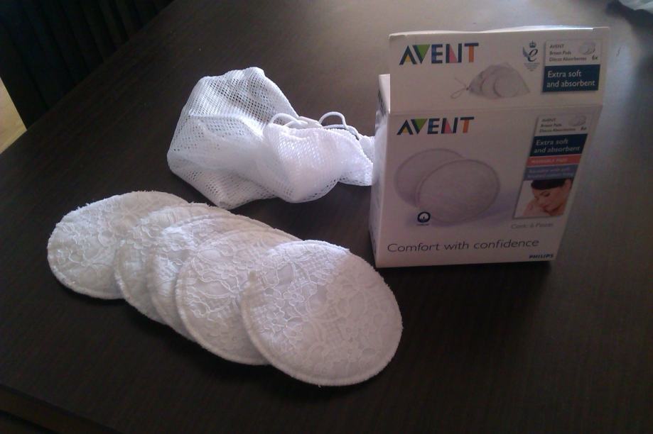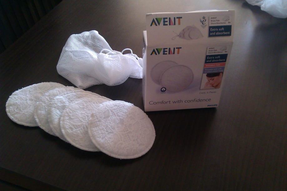 Višekratni jastučići za dojenje, pamučni, perivi na 60°C, pogodni za osobe s osjetljivom kožom, ili one koji ne žele stalno razmišljati o kupovini jednokratnih. U kompletu i vrećica za pranje u perilici rublja. 5 kom ( jedan se izgubio :( ), korišteni 2-3 puta. Ukrašeni čipkom.
