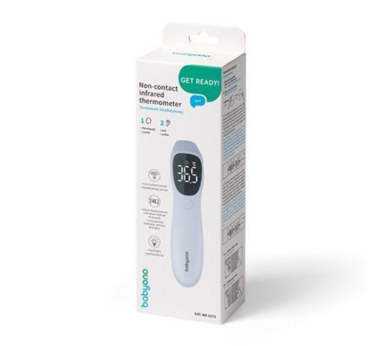Babyono beskontaktni toplomjer je brzo mjerenje temperature s čela ili uha. Samo jednom pritisnite tipku da biste dobili točan rezultat u samo sekundi. Mnogo je praktičniji od tradicionalnih termometara. Tihi vibrirajući alarm i LED svjetlo omogućuju mjerenje temperature čak i kada dijete spava. Moderan LED zaslon s pozadinskim osvjetljenjem omogućuje jednostavno očitavanje rezultata čak i noću.