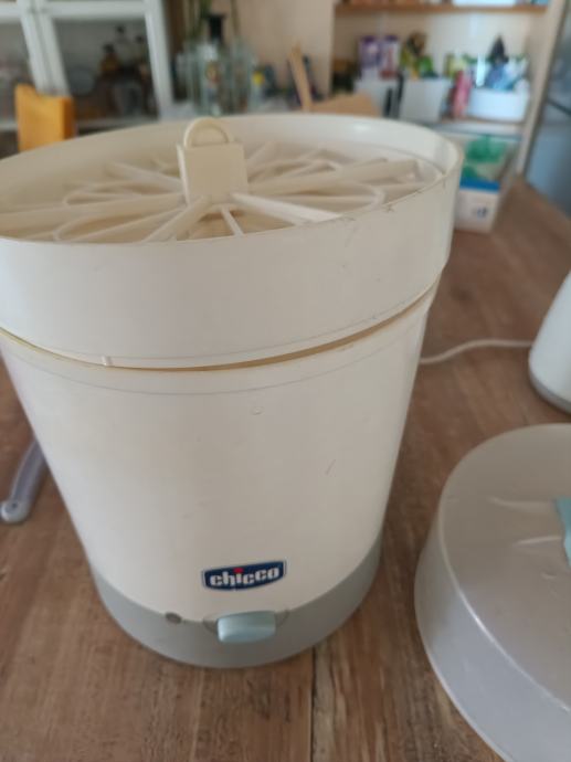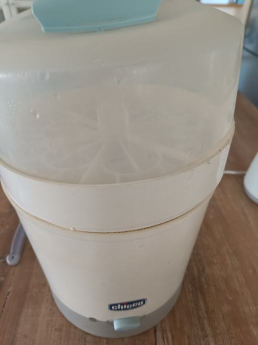 Chiccov sterilizator visine cca 35-40 cm. Sterilizira na vodenu paru. Lagan za održavanje. Samo prebrisati krpom nakon uporabe.