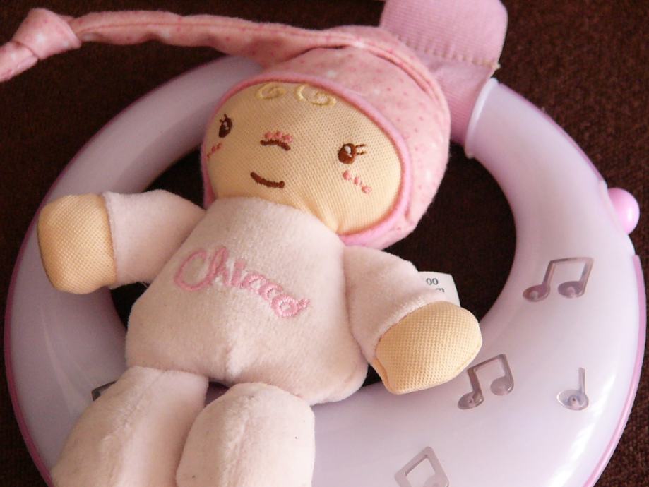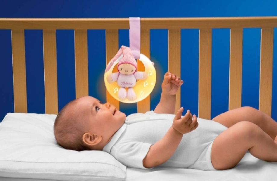 U krevetiću ili kolicima, pomaže bebi da lakše zaspi,svira umirujuće melodije i svjetli na dva načina.