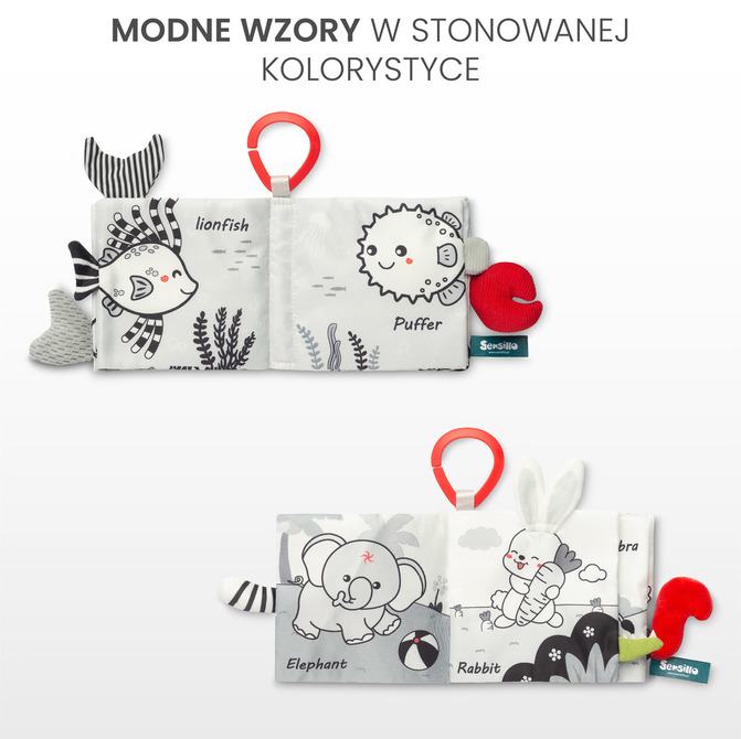 Minimalizam koji oduševljava – Senzorna knjiga Crno-bijela senzorna knjiga jedinstvena je igračka osmišljena da stimulira djetetova osjetila. Kombinira ilustracije s različitim teksturama i zvukovima, nudeći dojenčadi bogato osjetilno iskustvo. Jednostavna, ali intrigantna paleta boja u nijansama crne i bijele učinkovito stimulira bebin vid. Svaka stranica ima različite teksture materijala i elemente koji škripe ili šuškaju. Zahvaljujući upotrebi sigurnih materijala i mekih stranica, knjiga je savršena i kod kuće i u pokretu. Kontrastne boje koje podržavaju razvoj Crno-bijele igračke odličan su alat za podršku razvoju dojenčadi od prvih dana života. Jednostavni, geometrijski oblici i kontrastne boje privlače pažnju mališana, pomažući im u razvoju vida i motoričkih sposobnosti. Univerzalna montaža Zahvaljujući posebnoj kuki, privjesak se lako može pričvrstiti i na kolica i na autosjedalicu, što povećava njihovu funkcionalnost i svestranost. Minimalizam koji oduševljava – Senzorna knjigaCrno-bijela senzorna knjiga jedinstvena je igračka osmišljena da stimulira djetetova osjetila. Kombinira ilustracije s različitim teksturama i zvukovima, nudeći dojenčadi bogato osjetilno iskustvo. Jednostavna, ali intrigantna paleta boja u nijansama crne i bijele učinkovito stimulira bebin vid. Svaka stranica ima različite teksture materijala i elemente koji škripe ili šuškaju. Zahvaljujući upotrebi sigurnih materijala i mekanih stranica, knjiga je savršena i kod kuće i u pokretu. Kontrastne boje za potporu razvojuCrno-bijele igračke izvrstan su alat za potporu razvoju dojenčadi od prvih dana života. Jednostavni, geometrijski oblici i kontrastne boje zaokupljaju pozornost mališana, pridonose razvoju vida i motoričkih sposobnosti. Univerzalno pričvršćivanjeZahvaljujući posebnoj kuki, privjesak se lako pričvršćuje i na kolica i na autosjedalicu, što povećava njegovu funkcionalnost i svestranost.