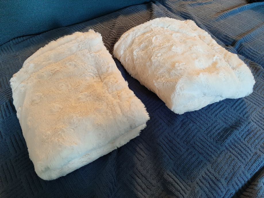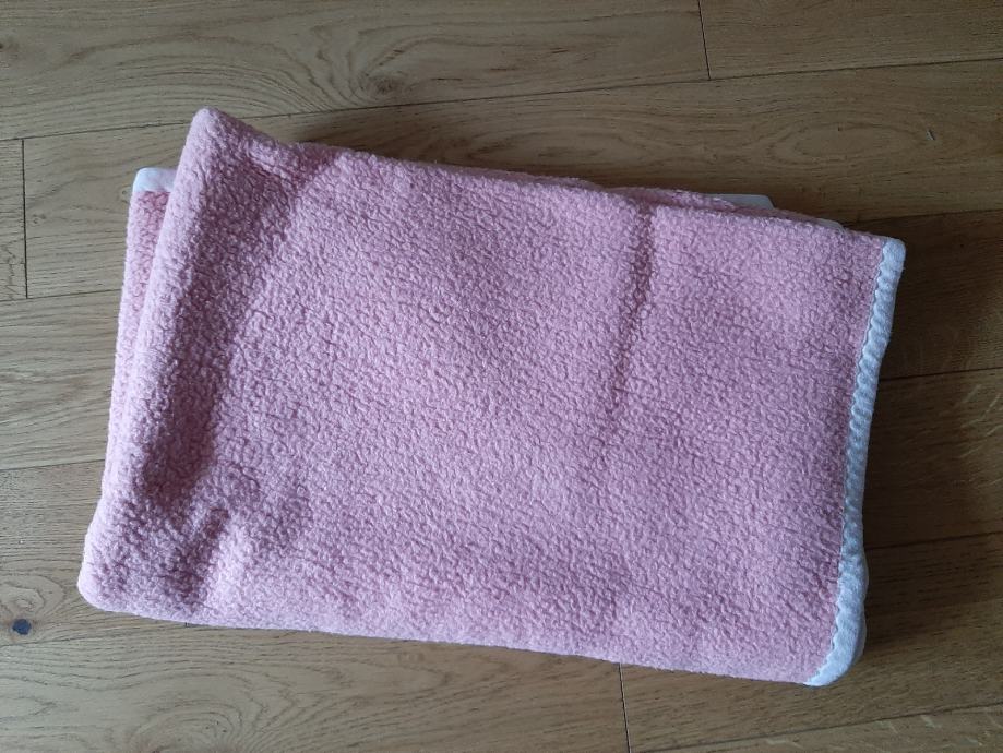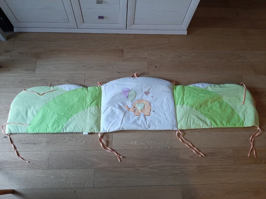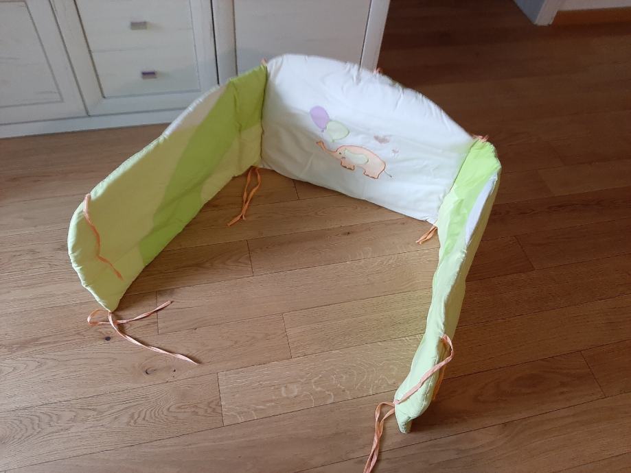 Zaštirna ogradica za kinderbed,plitki jastučić s jastučnicom,dvije bijele nove ukrasne dekice i jedna zimska roza malo starija al dobro očuvana