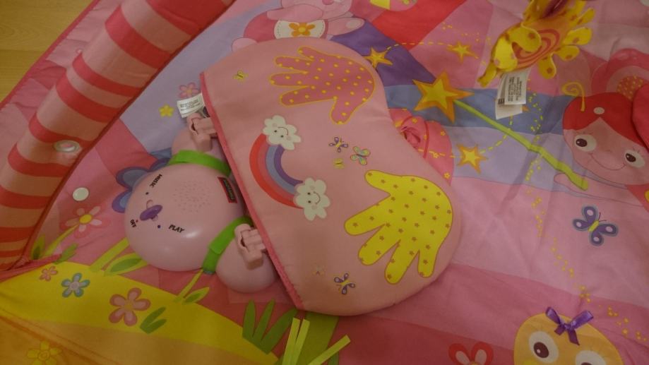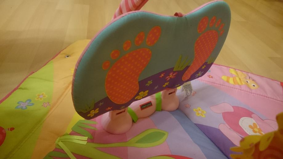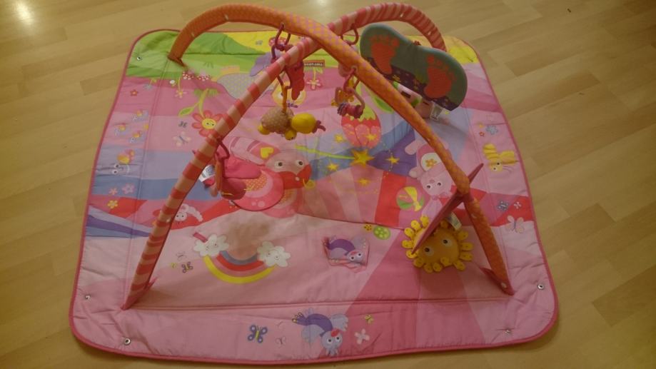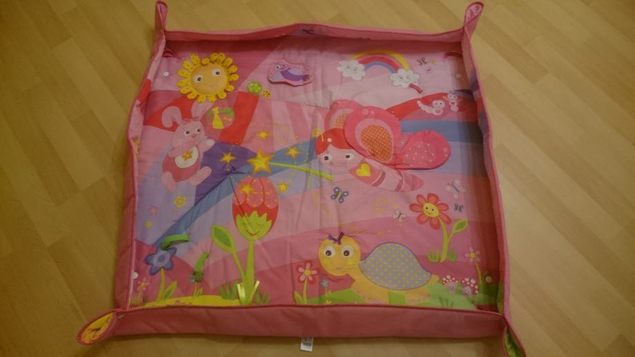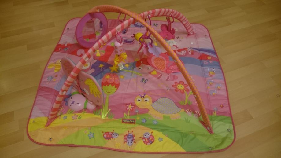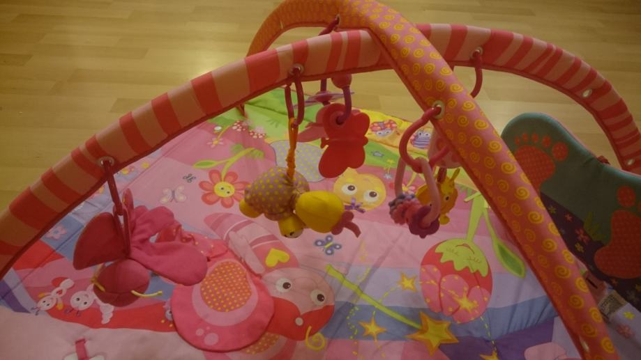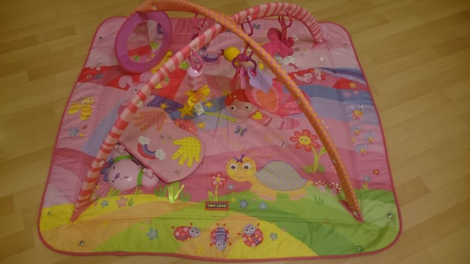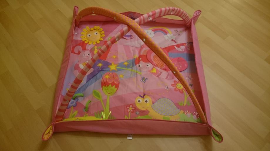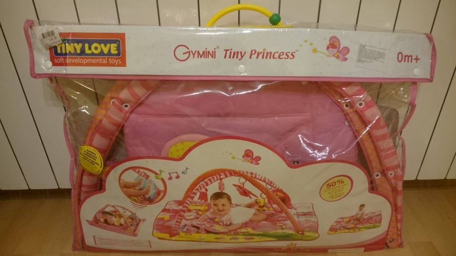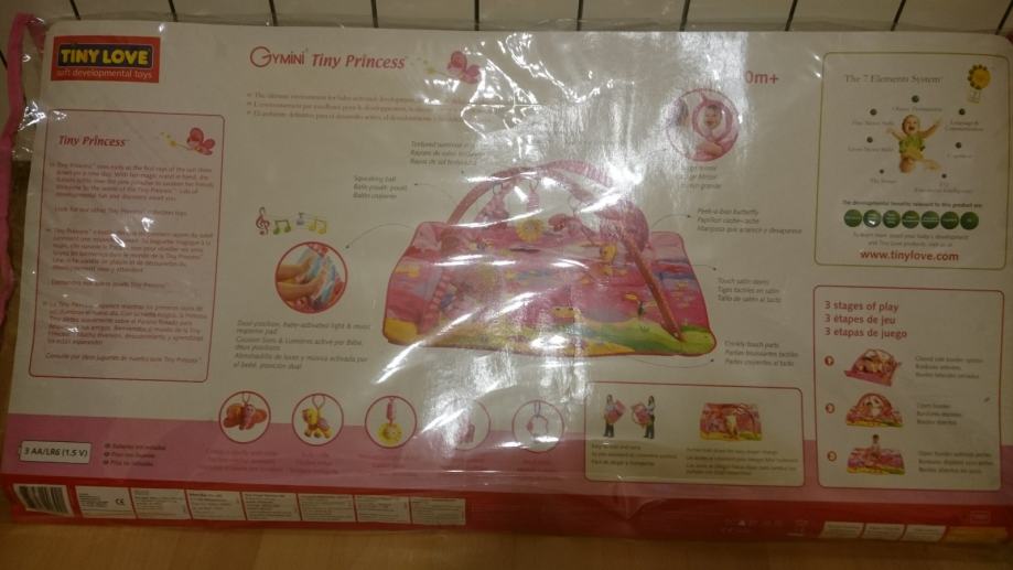 Podloga za igru Tiny Princess napravljena je od mekog materijala sa visećim igračkama, ogledalom i podlogom na baterije koju dijete aktivira nožicama ili ručicama.