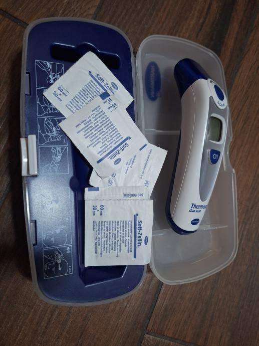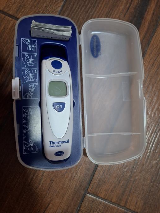 Prodajem digitalni mjerač temperature Thermoval duo stan, marke Hartman. Thermoval nudi dva načina skeniranja temperature -ili na čelu odnosno sljepočnici ili u slušnom kanalu uha. Thermoval duo scan je također namijenjen i odraslim osobama kojima su uobičajeni načini mjerenja temperature neugidni. Ovaj digitalni toplomjer pohranjuje posljednju izmjerenu vrijednost i jednostavan je za korištenje. Ujedno ima i veliki osvijetljeni zaslon.