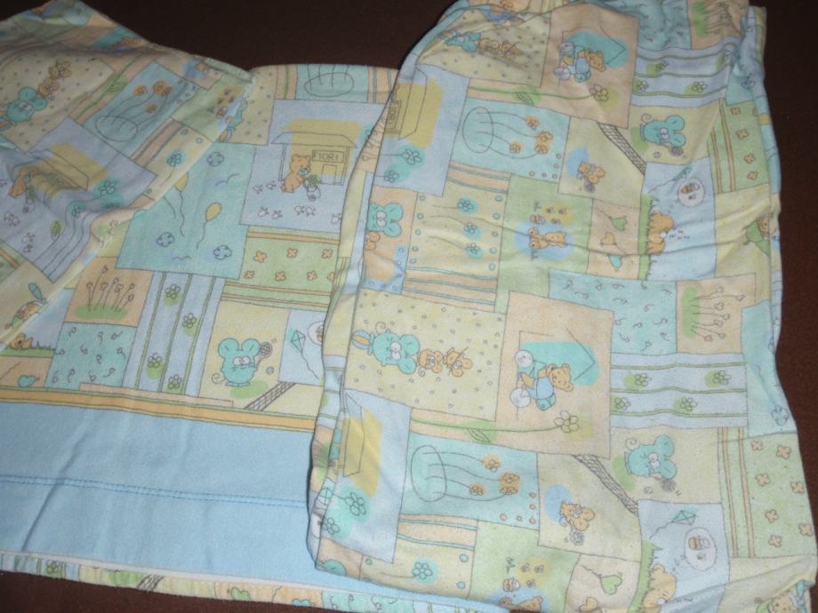 Flanel posteljina za dječji krevetić. Dimenzije: jastučnica 38×53, donja plahta na gumicu 100×140, gornja plahta 100×170. Jako dobro očuvana. Pogledajte moje ostale oglase.