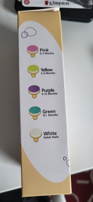 U setu dolaze nastavci za nokte za djecu do 3 mjeseca, do 6 mjeseci, do 12 mjeseci i starije od 12 mjeseci.