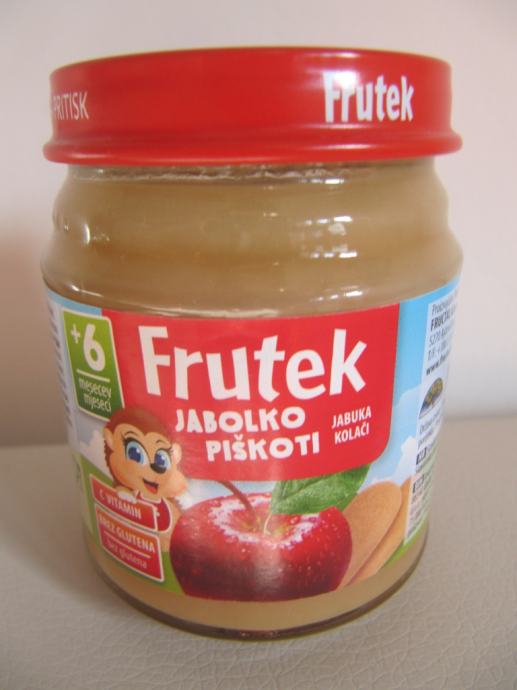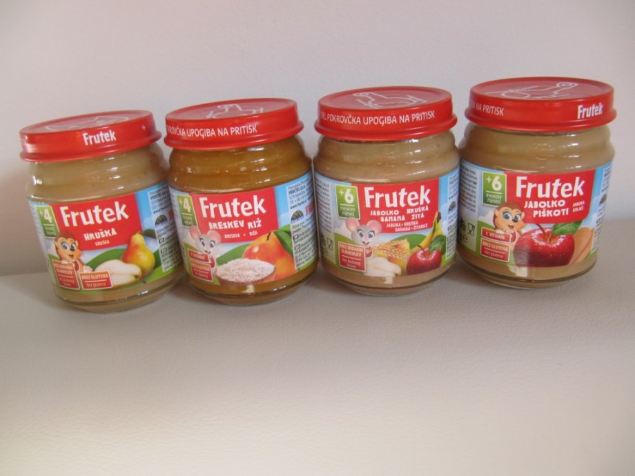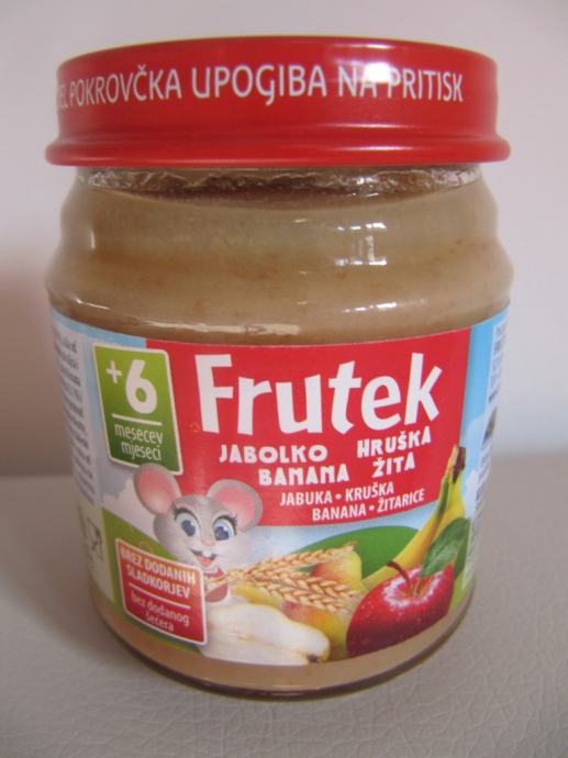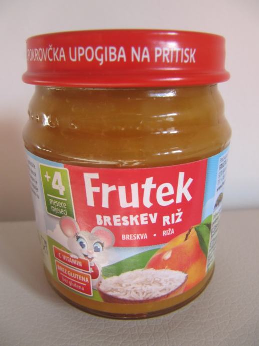 Prodajem 4 Frutekove kašice, 120 g svaka, neotvorene, ne usudim se ponuditi ih svome djetetu zbog ranije alergijske reakcije. Kašice su redom: kruška (rok trajanja 31.01.2017.), breskva riža (rok trajanja 12.10.2016.), jabuka, kruška, banana, žitarice (rok trajanja 04.02.2017.) i jabuka kolači/piškoti (rok trajanja 16.12.2016.). Kašice su namijenjene djeci od 4. mjeseca i od 6. mjeseca života, u potpunosti kao u trgovini, kupljene nedavno i držane na polici na sobnoj temperaturi. Cijena za sve zajedno je 10 kn.