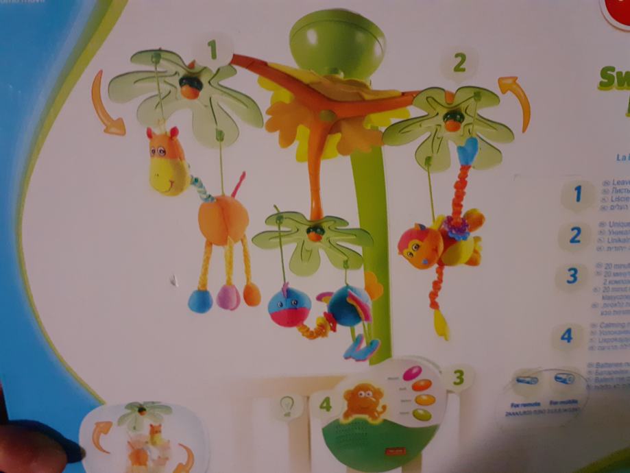Tiny Love Sweet Island Dreams Mobile glazbeni vrtuljak omogućuje roditeljima pomoću daljinskog upravljača lagano podešavanje razine rada. Aktivirajte svjetla, pokrete i glazbe, sve zajedno ili upoznajte dijete sa načinom rada vrtuljka, aktiviranje svih 4 različitih melodija, uživajte u potpunosti u ovom muzičkom vrtuljku ili ukloniti držač i koristite ga kao glazbenu kutiju.
