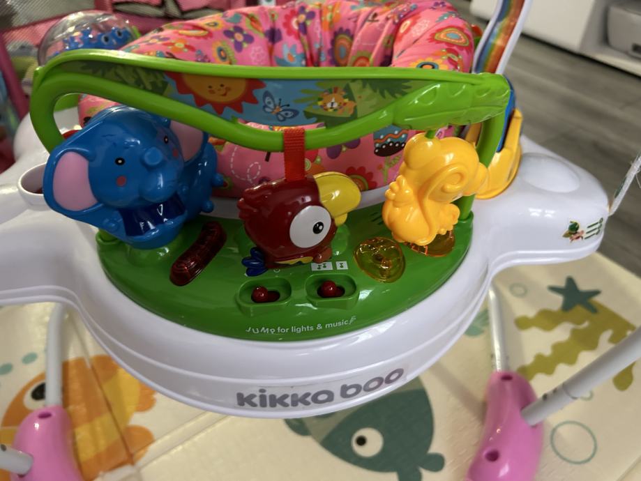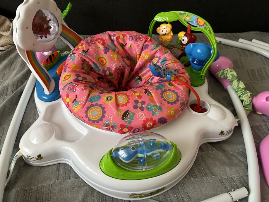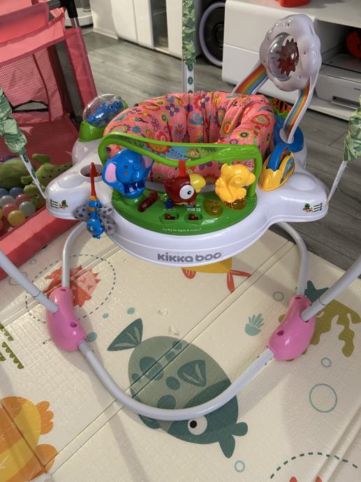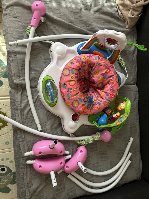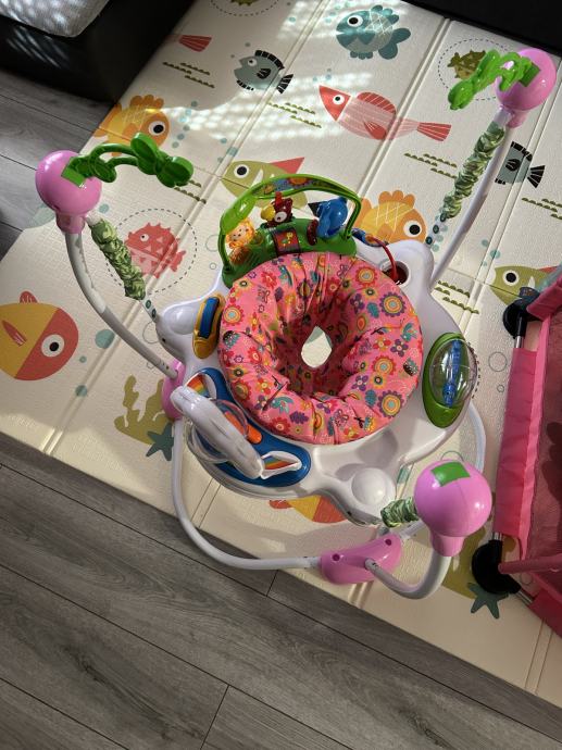 -Stimulira dijete svjetlima, zvukovima i glazbom. Luk s igračkama može se skinuti. Šarene tipke koje svijetle. Grickalica za zube. Jednostavno se sastavlja (bez alata). Može se sklopiti. Presvlaka se može prati u ves masini za pranje rublja