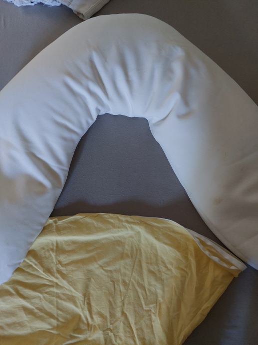 Jastuk veliki za bebe sa granulama stiropora. Sa navlakom. U dobrom stanju. Moguća dostava na području Rijeke i okolice. Gratis plahtica.